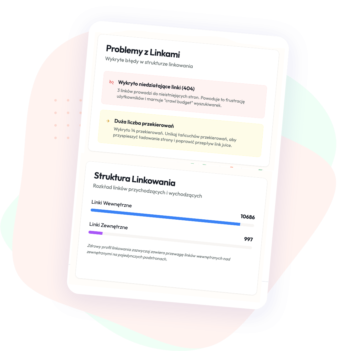Audyt SEO, wydajności i widoczności w jednym narzędziu. Crawling SEO, Core Web Vitals, widoczność i backlinki, analiza AI. Otrzymujesz gotowy plan wykonania z kodem — nie tylko „co poprawić”, ale „jak to zrobić”.